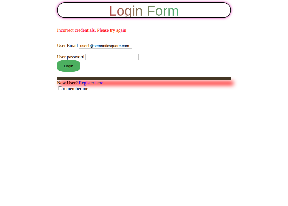 1: Login with wrong password ({email=user1@semanticsquare.com, wrongPassword=xyz, errorMessage=Incorrect credentials. Please try again})